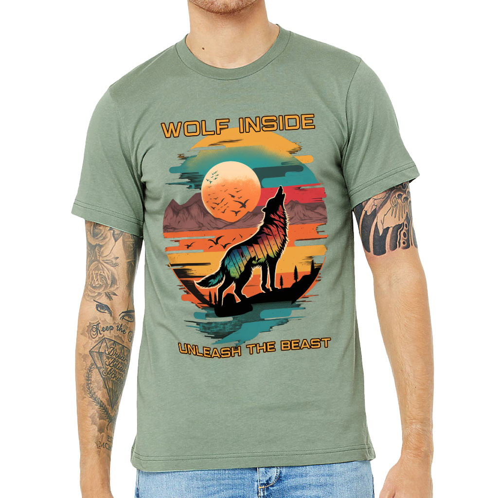 The cotton material feels great against your skin and is very light, feels good on the body, and has good air permeability. The material of Wolf Inside Short Sleeve T-Shirt makes you feel soft and comfortable. No fading, no pilling!